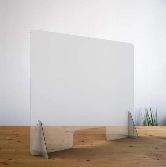 Smart och enkelt kassaskydd / hostskydd i akryl för bord, med öppning för t ex betalkort, förhindrar smitta bland personal & besökare. Enkel montering och placering på disken. Ses ofta i butik eller hotell.