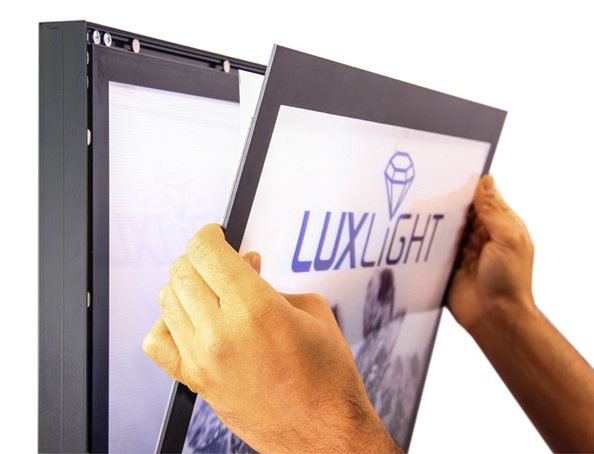 Front: Fronten består av 3 mm klart akrylglas med svart screentryckt ram.